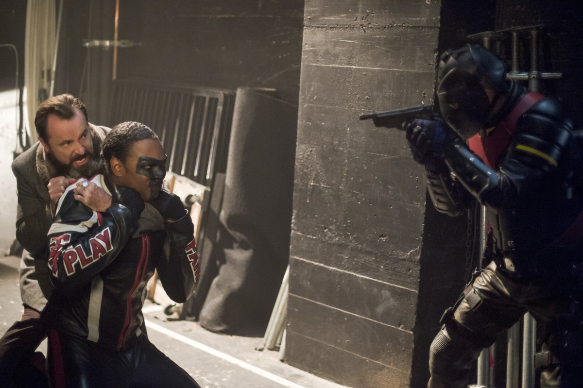 Arrow -- "The Devil's Greatest Trick" -- Image Number: AR613b_0214.jpg -- Pictured (L-R): David Nykl as Anatoly Knyazev, Echo Kellum as Curtis Holt/Mr. Terrific and Rick Gonzalez as Rene Ramirez/Wild Dog -- Photo: Diyah Pera/The CW -- é 2018 The CW Network, LLC. All Rights reserved.