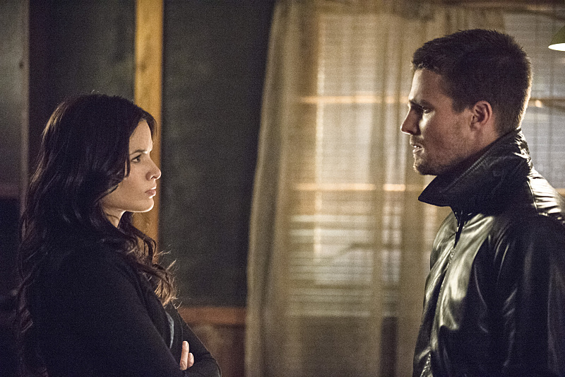 Arrow -- "The Magician" -- Image AR304b_0132b -- Pictured (L-R): Katrina Law as Nyssa al Ghul and Stephen Amell as Oliver Queen -- Photo: Cate Cameron/The CW -- © 2014 The CW Network, LLC. All Rights Reserved.