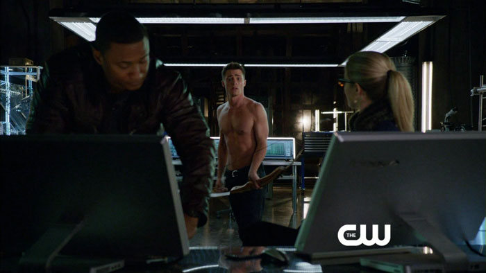 Screen captures from a preview clip for the Arrow episode The Promise Arrow “The Promise” Preview Clip Screencaps – Roy Loses His Shirt!