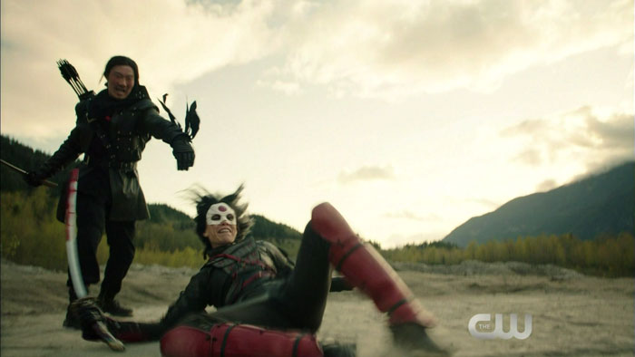 In the comic books, Tatsu Yamashiro is the sword-wielding Outsider and Justice Leaguer known as Katana… and it appears that in next week’s episode “This Is Your Sword,” Rila Fukushima puts on the costume to [hopefully] help Team Arrow to save Oliver Queen’s soul!