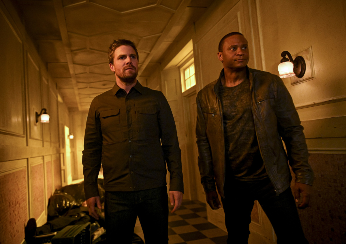 Arrow -- "Welcome to Hong Kong" -- Image Number: AR802a_0244b.jpg -- Pictured (L-R): Stephen Amell as Oliver Queen/Green Arrow and David Ramsey as John Diggle/Spartan -- Photo: Sergei Bachlakov/The CW -- © 2019 The CW Network, LLC. All Rights Reserved.