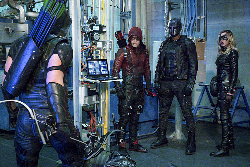 Arrow -- "Unchained" -- Image AR412A_0054b.jpg -- Pictured (L-R): Stephen Amell as Green Arrow, Colton Haynes as Arsenal, David Ramsey as John Diggle and Katie Cassidy as Black Canary -- Photo: Liane Hentscher/ The CW -- é 2016 The CW Network, LLC. All Rights Reserved.