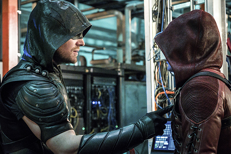 Arrow -- "Unchained" -- Image AR412A_0185b.jpg -- Pictured (L-R): Stephen Amell as Green Arrow and Colton Haynes as Arsenal -- Photo: Liane Hentscher/ The CW -- © 2016 The CW Network, LLC. All Rights Reserved.