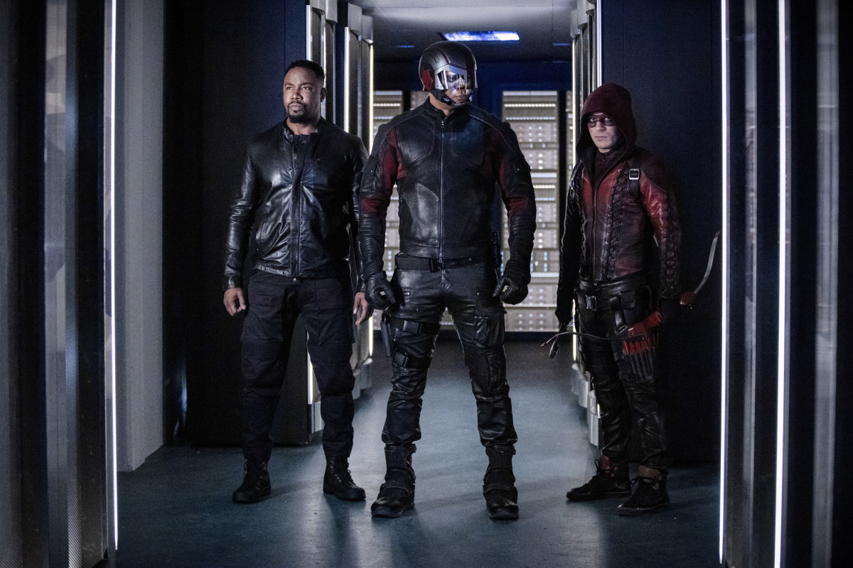 Arrow -- "You Have Saved This City" -- Image Number: AR722A_0007b.jpg -- Pictured (L-R): Michael Jai White as Ben Turner/Bronze Tiger, David Ramsey as John Diggle/Spartan and Colton Haynes as Roy Harper -- Photo: Jack Rowand/The CW -- é 2019 The CW Network, LLC. All Rights Reserved.