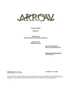 Arrow Executive Producer Marc Guggenheim today revealed the title page and credits for the next-to-last episode of Season 5.