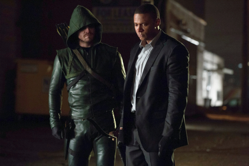 Arrow -- "Trust But Verify" -- Image AR111c_0637b – Pictured (L-R): Stephen Amell as The Arrow and David Ramsey as John Diggle -- Photo: Jack Rowand/The CW -- © 2013 The CW Network. All Rights Reserved