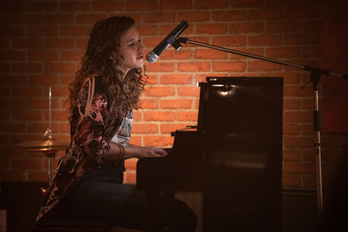 Arrow -- "Green Arrow & The Canaries" -- Image Number: AR809e_0354r.jpg -- Pictured: Juliana Harkavy as Dinah Drake/Black Canary -- Photo: Jack Rowand/The CW -- © 2020 The CW Network, LLC. All Rights Reserved.