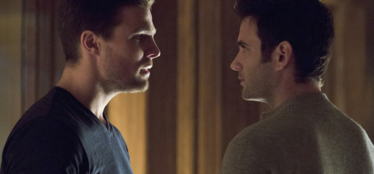 In this alternate version, which we assume was never filmed, Oliver (Stephen Amell) tells Tommy (Colin Donnell) that yes, he “had to” kill his father Malcolm (John Barrowman) — and as soon as Tommy breaks free from being stuck beneath the rebar… Tommy threatens that he knows what he has to do — “I’m going to have to kill you!”