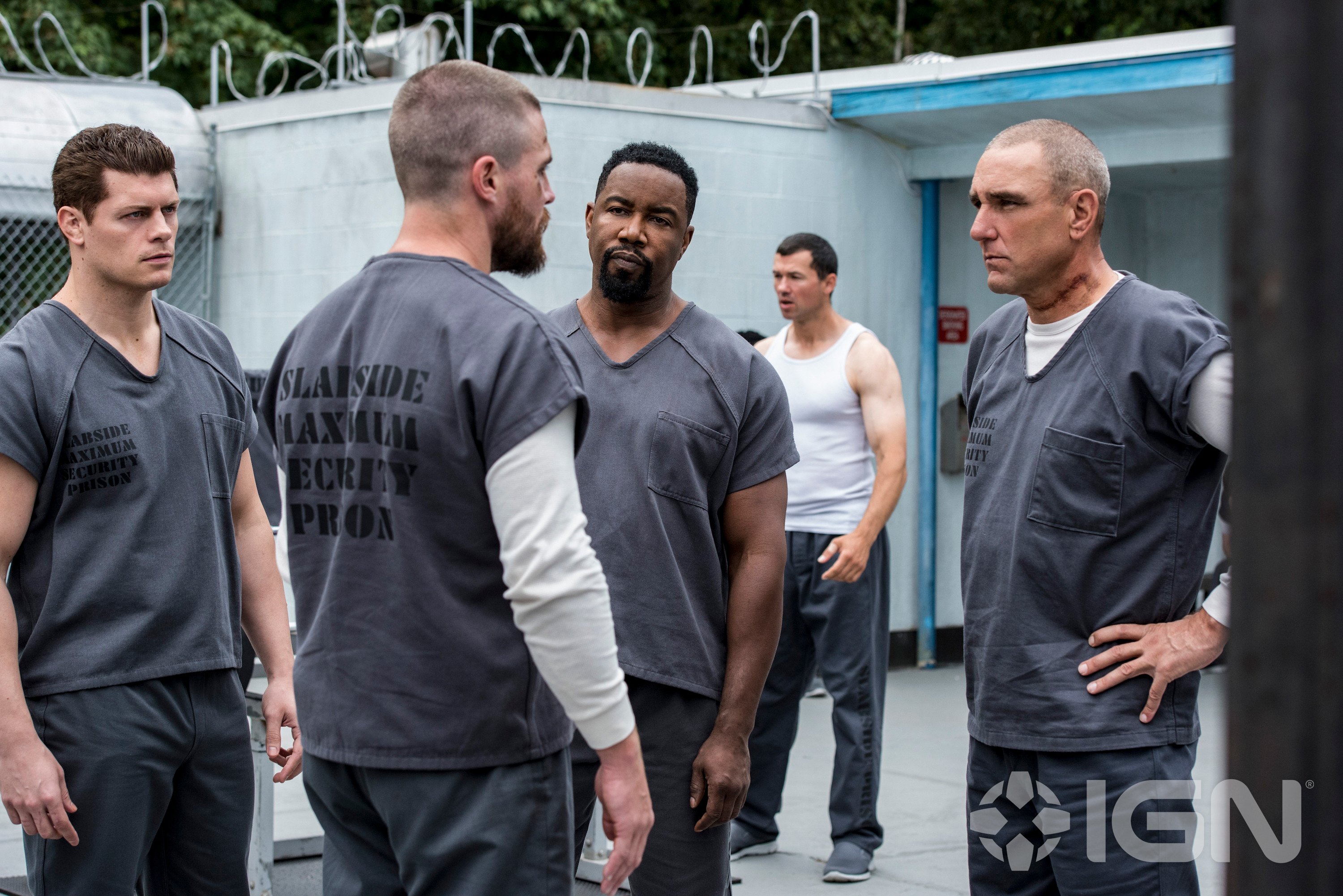 “Stanley and Oliver have a relationship where, when he first gets in there, he seeks out Oliver for help and for protection,” Amell said. “And there’s a very, very interesting scene, where Brick and his whole crew use Stanley as leverage against Oliver. And especially in the first episode, it really illustrates how far Oliver’s fallen, and how he’s had to cope with being in prison.”