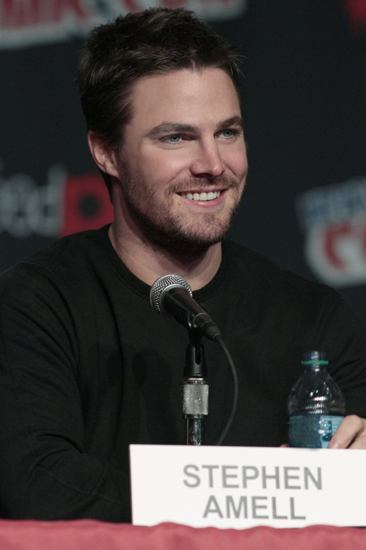 Warner Bros. has provided us with some images of Stephen Amell, Katie Cassidy, Willa Holland, and Arrow executive producer Marc Guggenheim at this year’s New York Comic Con. While there they also snapped some pictures with a fan dressed as Green Arrow.