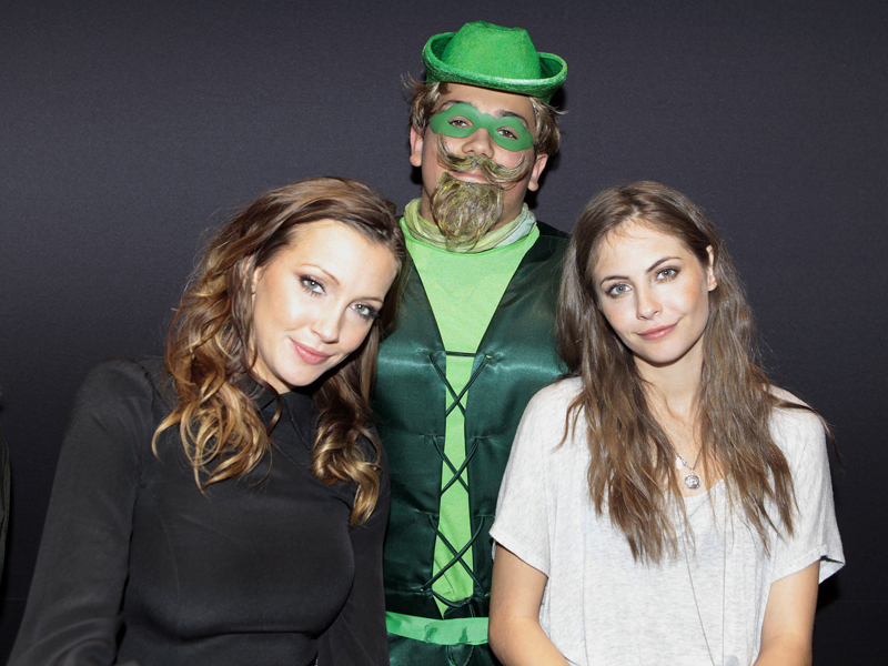 Warner Bros. has provided us with some images of Stephen Amell, Katie Cassidy, Willa Holland, and Arrow executive producer Marc Guggenheim at this year’s New York Comic Con. While there they also snapped some pictures with a fan dressed as Green Arrow.