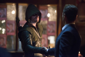Episode 10 [also] brings the Arrow together with Sebastian Blood, because if the city is going to be in jeopardy, who is going to come to the fore but Sebastian Blood? It basically makes for some very, very complex situations, because the Arrow knows that there’s a man out there in the skull mask, but he doesn’t know that Sebastian Blood is the man who wears the skull mask.