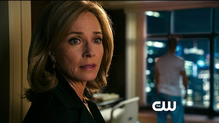 It offers a good look at some more players from Arrow, including Susanna Thompson as Moira Queen and guest star Brian Markinson as Adam Hunt.