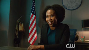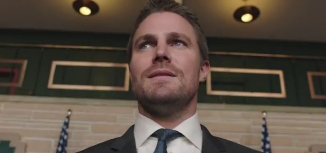 “I come in and talk with the reporters, and one of the things that I’m enjoying doing as mayor this year, and Oliver as a character to a certain extent, is I’ve tried to up the charm factor a little bit,” Amell continued before teasing that something fun may happen in the scene. “He should be a little more comfortable in his shoes as a public figure. He steps in and deals with the press in a very, very relaxed way. Quentin says to him, ‘You seem pretty good with this,’ and Oliver’s like, ‘I’ve been here before.’ In that scene, we get to do the coolest name drop that we’ve ever done on the show, which I was really fired up about,” he teased.