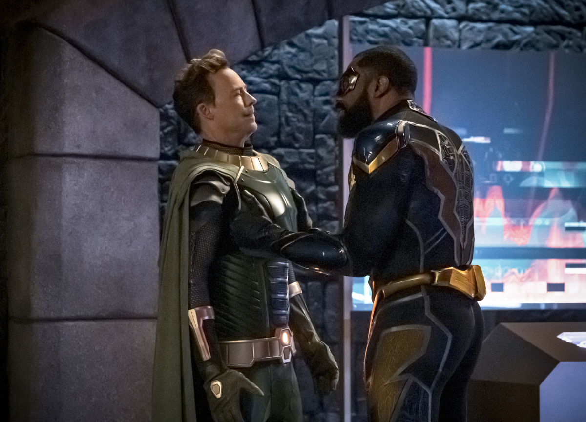 The Flash -- "Crisis On Infinite Earths: Hour Three" -- Image Number: FLA609b_0048b.jpg -- Pictured (L-R): Tom Cavanagh as Pariah and Cress Williams as Black Lightning -- Photo: Katie Yu/The CW -- © 2019 The CW Network, LLC. All rights reserved