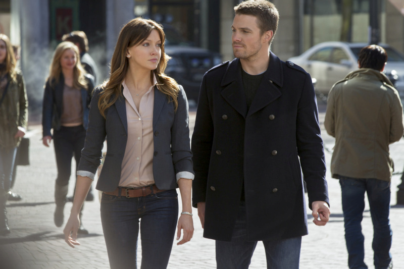“Pilot” -- Pictured (L-R): Katie Cassidy as Laurel and Stephen Amell as Oliver Queen in ARROW on The CW. Photo: Jack Rowand/The CW ©2012 The CW Network. All Rights Reserved.