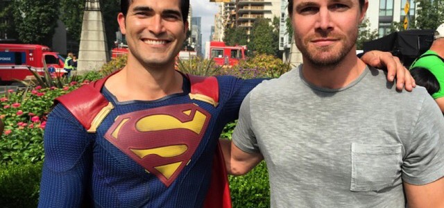 Tyler Hoechlin will be playing Superman on Supergirl, and in this photo, we’ll see that he and the man who brings us the Green Arrow had a surprise encounter.